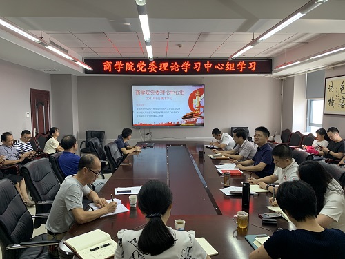 9月27日下午,商学院党委理论学习中心组在博文楼南1206会议室开展集体学习,学习《习近平在庆祝中国共产党成立100周年大会上的讲话》《中国共产党普通高等学校基层组织工作条例》和《中国共产党组织建设一百年》。商学院党委班子成员、党支部书记、各系正副主任、辅导员、行政科室人员参加学习,学院党委书记陈文俊主持并讲话,本科生国商支部书记马龙作中心发言。