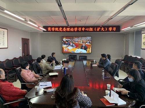 11月25日下午,商学院党委理论学习中心组在博文楼南1206会议室开展集体学习,收看湖南省第十二次党代会开幕式实况。商学院党委班子成员、党支部书记、辅导员参加学习,学院党委书记陈文俊主持学习并作中心发言。