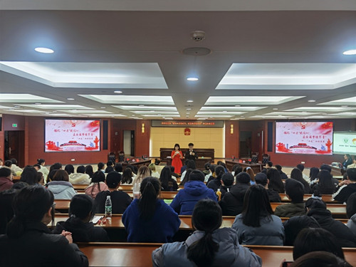 11月28日下午,商学院党委在博文楼一楼模拟审判实验室举行“铭记四史筑信仰,追逐国梦续华章”四史知识竞赛活动。学校党委组织部副部长赵培瑞、商学院党委副书记徐钰婷和学院组织员王晓娜出席本次活动,活动由严圣杰、吕畅主持。