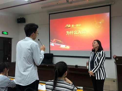 5月8日晚19:00,由商学院党委副书记徐钰婷进行第62期入党积极分子培训班第三课——《党的宗旨和指导思想》的授课。徐书记运用通俗易懂的语言,结合本校优秀共产党员先进事例及自身实际经历对党的宗旨和指导思想进行讲解,徐书记采取理论授课与课堂提问的方式,充分调动了课堂的积极性,激发了每一位入党积极分子的热情,加深了各积极分子对党的宗旨及指导思想内涵的理解。最后,这节精彩的党课在全体积极分子慷慨激昂的宣誓声中落下帷幕。