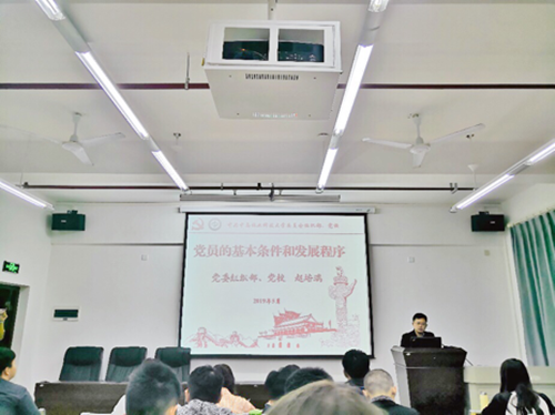 5月6日晚19:00,校党委组织部副部长、党校副校长赵培瑞为商学院分党校第62期入党积极分子培训班上了第一课——《党员的基本条件和发展程序》。赵部长从入党条件、入党程序步骤以及党员需要履行的义务等方面进行了详细的阐述与说明,使学员们进一步明确入党的程序和条件,对党有了更加深刻的认识,增强了向党组织靠拢的自觉主动性。