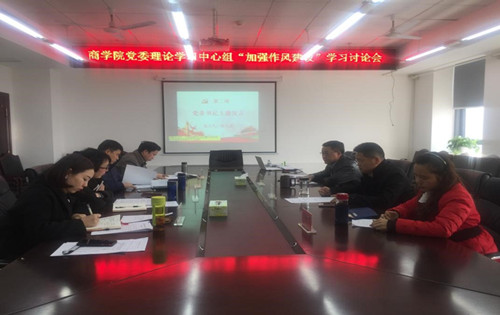 1月10日下午,商学院党委理论学习中心组在文综楼南1206会议室召开“加强作风建设”学习讨论会,中心组全体成员出席会议,会议由陈文俊书记主持。