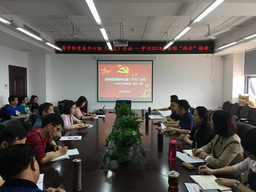 4月3日下午,商学院党委在文综楼1206会议室召开2018年党委中心组(扩大))会议,学习传达“两会”精神。商学院党委副书记徐钰婷主持会议。学院全体中心组成员、党支部书记、教研室主任参加会议。