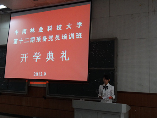 9月22日上午9点,中南林业科技大学党校第12期预备党员培训班开学典礼在学校生科楼003教室隆重举行。商学院2010级预备党员刘诗菱同学继1—11期预备党员培训班之后,连续代表第12期预备党员在全校作大会发言,为我院学生党员续写了光辉篇章。副校级督导蔡玉梅作报告,学校党委组织部副部长唐鼐、许桂梅,商学院副处级组织员吴友亮和各兄弟学院分团委书记出席了开学典礼。