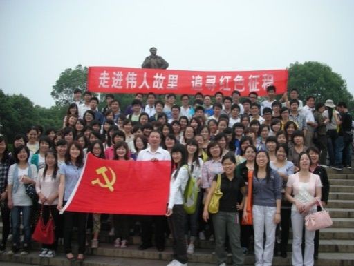 “日出韶山东方红”。2010年5月29日,商学院会计联合党支部102名党员在副处级组织员吴友亮和党支部书记李吟霜、熊昭等同志的带领下,以“走进伟人故里,追寻红色征程”为活动主题,前往韶山、花明楼开展系列党员教育活动。