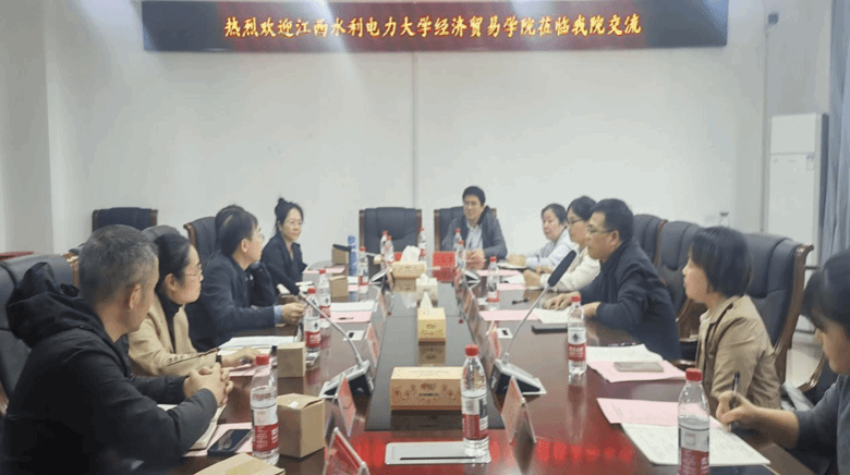 2025年11月5日,江西水利电力大学经济贸易学院郑智副院长一行7人,到我院围绕“人才培养方案制定与实施”“产教融合与数智化转型”“专业实验室建设”“专业结构优化调整”等议题进行了深度调研与交流,学院副院长袁怀宇与金融系、国贸系主要负责人参与调研交流。
