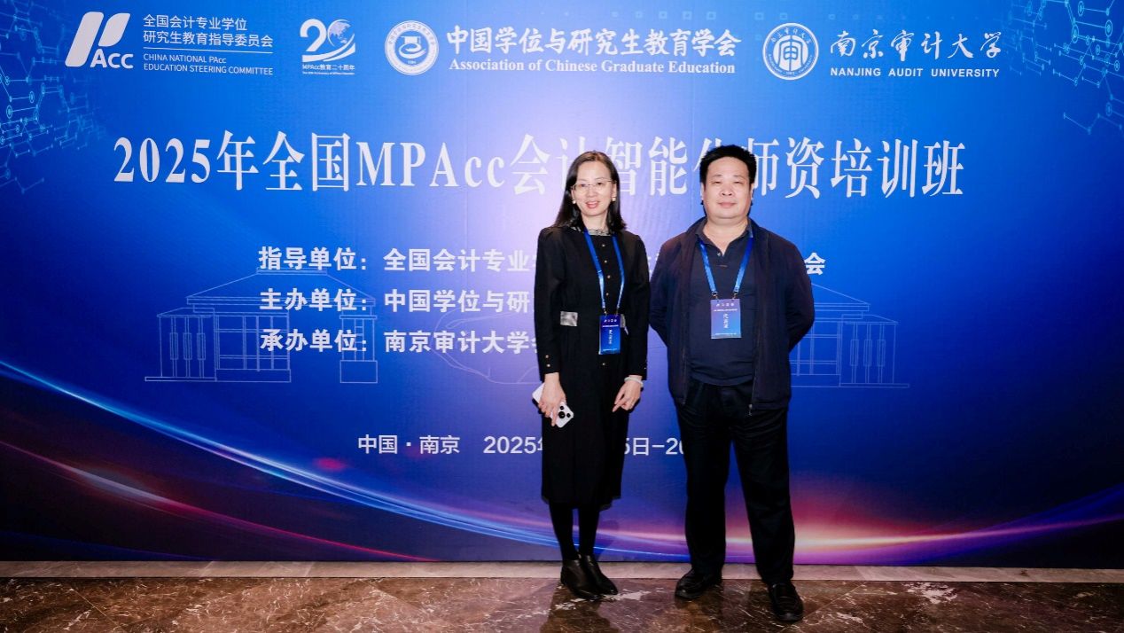 10月25日至26日,中国学位与研究生教育学会在南京审计大学举办2025年全国MPAcc会计智能化师资培训班。我院蒋欣副教授、彭喜阳副教授参加培训,与来自全国百余所高校及企业的专家学者,围绕会计数智化发展趋势、课程建设与教学实践等议题展开深入交流。