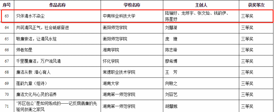 6月28日,全国第九届高校廉洁教育系列活动省内评选结果揭晓,我院师生荣获视频类三等奖一项、征文类三等奖一项。