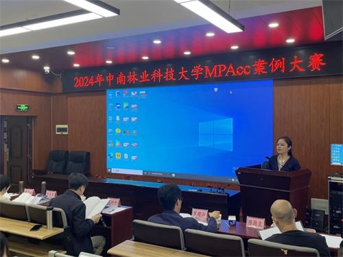 2024年4月19日,中南林业科技大学2024年MPAcc企业案例大赛在商学院顺利举行。大赛由MPAcc中心主任张昌文主持,商学院党委书记李婷发表重要讲话。商学院副院长甘瑁琴教授、会计系盛均全教授、国际商务系蔡珍贵教授、市场营销系陈德良教授、MBA中心主任罗建兵担任现场评委。本次比赛共有2022级和2023级会计硕士组成的10支队伍参加,最终以“校外专家盲审评分(70%)+校赛现场评分(30%)”的形式,评选出“专业团队”“不断超越队”“重案六组”和“对方辩友来我们队”4支队伍参加由湖南省教育厅主办、中南大学承办的第九届湖南省高校MPAcc企业案例大赛。