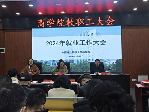 3月18日下午,商学院在博文楼南1205报告厅召开就业工作大会,全体教职工参加。会议由学院党委书记李婷主持。