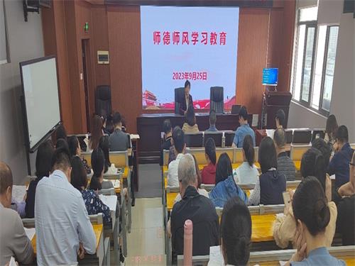 9月25日下午,学院组织全体教职工集中开展师德师风建设学习教育。党委书记彭爽主持。