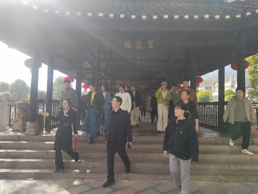 22日下午,全体党员首站抵达位于洪家关白族乡的贺龙桥。这座古老的风雨桥是贺龙元帅早期革命活动的起点,也是贺龙元帅戎马一生的历史见证。党员们驻足桥上,聆听现场讲解,深刻感悟贺龙元帅“两把菜刀闹革命”的豪情壮志和在艰难困苦环境中开创伟业的无畏精神。