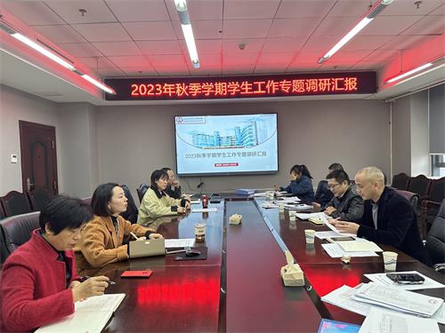 11月27日下午,学校学工部部长严爱军率队来我院开展2023年秋季学期学生工作专题调研,学工部副部长洪晶波、张明及各相关科室负责人一同参与调研。学院党委书记彭爽、党委副书记徐钰婷以及全体辅导员参加会议。