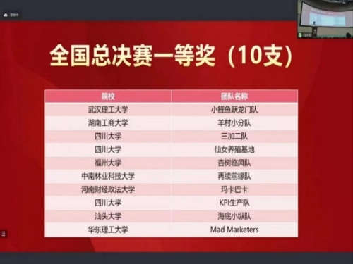 8月26日,由东北大学承办的第二届CMAU全国大学生市场研究与商业策划大赛全国总决赛顺利闭幕。由我院2021级硕士研究生组成的“再续前缘队”代表学校参加比赛,在全国两千多支参赛队伍中突出重围,荣获一等奖(全国共10个)。同时我校荣获 “最佳院校组织奖”,方威老师、周慧滨老师获得优秀指导老师。