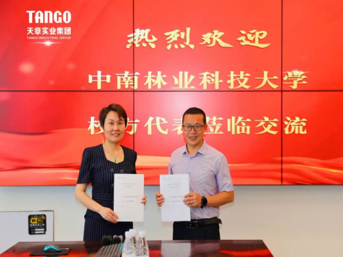 张娟和郑贵军代表双方签署了校企合作协议,并表示将充分发挥双方资源与平台优势,开展深入的合作和交流。郑贵军代表学院向天章实业集团颁授“中南林业科技大学商学院产学研实习基地”牌匾。