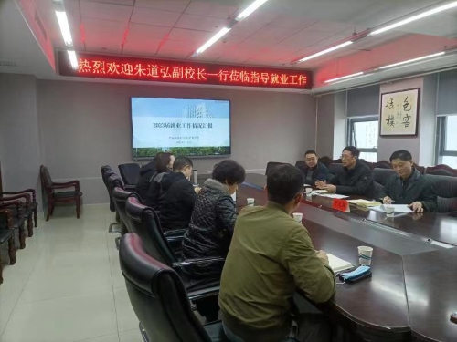 院长方威对朱道弘副校长一行的到来表示热烈欢迎,并从工作现状、工作举措等方面汇报了学院2023届毕业生就业工作开展情况。党委书记彭爽代表学院感谢学校及招生就业处对学院就业工作的指导与帮助,并表态将坚定不移朝90%的就业率目标努力。