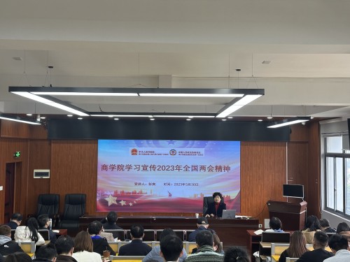 3月30日下午,商学院在博文楼南1205报告厅召开会议传达学习全国两会精神。学院领导班子、教工党员以及学生党员代表参加讲座,院长方威主持会议,党委书记彭爽领学。