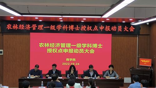 博士点建设是高质量、高水平学科建设的核心,是衡量一所大学办学水平的重要标志。10月24日在博文楼南1205商学院学术报告厅,学院组织召开农林经济管理学科建设推进暨新一轮博士点申报动员会。副校长仇怡、研究生院院长李贤军、社科处处长侯茂章、社科处副处长刘灵犀以及全院全体教职员工110余人参加会议。会议由学院党委书记彭爽主持。