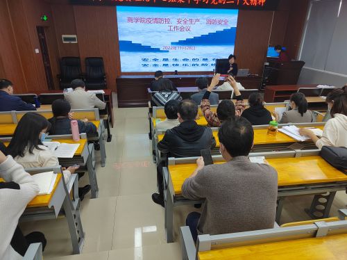 11月28日下午,商学院在博文楼南1205报告厅召开安全工作会议。学院党政领导班子成员,各系主任、副主任、支部书记,全体行政人员,辅导员参加会议。