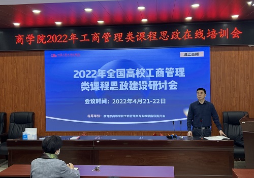 为深入实施《高等学校课程思政建设指导纲要》,贯彻落实《中南林业科技大学课程思政建设实施方案》(中南林发〔2020〕87号),推进学院课程思政建设工作,学院2022年4月21-22日组织全院教师参加全国高校工商管理类课程思政建设在线培训会。