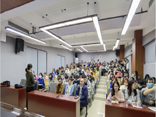 随后,获得上一届国家二等奖的任淼同学分享了比赛经验。结合她们团队的亲身经历在赛前准备、项目调研以及现场汇报等几个方面分享了经验并给出了相关建议。并且强调如何通过参加市场调查与分析竞赛激发个人潜能、培养团队意识和自学能力。
