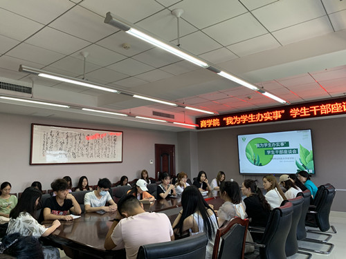 为更好地服务学院全体学生,做到学史力行,服务先行,商学院于2021年6月7日在博文楼召开“我为学生办实事”学生干部座谈会。商学院党委副书记徐钰婷、商学院团委书记何佩云以及团委学生会各部门学生干部参加此次座谈会。