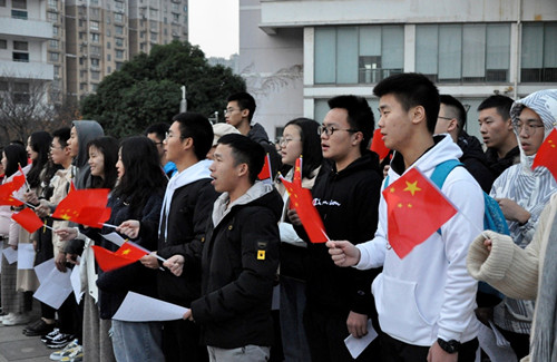 旭日朝升,晨岚弥漫。怀着对祖国的美好祝愿,中南林业科技大学商学院于12月9日举行了“国旗下的誓言”升旗仪式暨“敬礼国旗,传承经典”主题教育活动,奏响书写青春的乐章。出席本次活动的领导嘉宾有中南林业科技大学学工部副部长李建林老师,图书馆党总支副书记兼副馆长王运峰老师、图书馆阅读推广部老师及学生馆长团队成员,商学院党委书记陈文俊教授及商学院的全体辅导员老师。