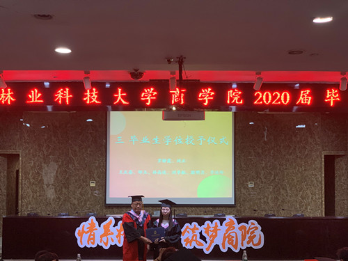 情系林大,筑梦商院。中南林业科技大学商学院2020届毕业典礼在合唱校歌《科技栋梁之歌》的歌声中顺利结束。