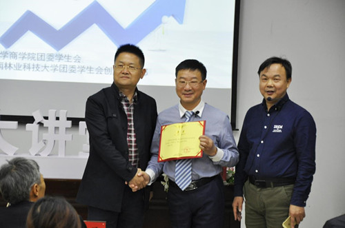 本次大讲堂由MPAcc中心主任张昌文主持,学院副院长蔡珍贵教授、ACCA中心主任敬文举副教授等出席了论坛。陈文俊书记向周四明先生颁发了MPAcc校外导师的聘书。参加本次大讲堂的特邀嘉宾,还有周四明先生在学校读书时的领导、老师和同学代表:学校离退休处周选民副教授、理学院党委书记邱悦颜副教授、经济学院副院长谢坤语副教授、经济学院金融系段志强副教授、省自然资源厅地质勘察管理处李建国先生、长沙市自然资源局颜双七等。