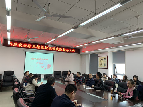 2019127日下午2:00MPAcc办学汇报会在博文楼南1206商学院会议室召开。全国MPAcc教指委委员徐玉德研究员亲临指导。参加会议的有学院领导、MPAcc导师和部分2019MPAcc学生。会议由学院党委书记陈文俊教授主持,MPAcc中心主任张昌文作专题汇报。
