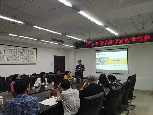 本次竞赛由罗攀柱教授、蔡珍贵教授、杨丽华教授、甘瑁琴副教授、姚利辉副教授担任评委。竞赛现场精彩纷呈,课堂讲授形式各具特色,展示商学院青年教师良好的教学水平和教学素质。袁宝龙老师的工商管理经典著作选读中对管理理论的研究独具特色,宋璇老师富有亲和力的讲课独具匠心,曹兰芳老师结合实际讲解管理方法,获得了在场评委和老师们的一致好评。