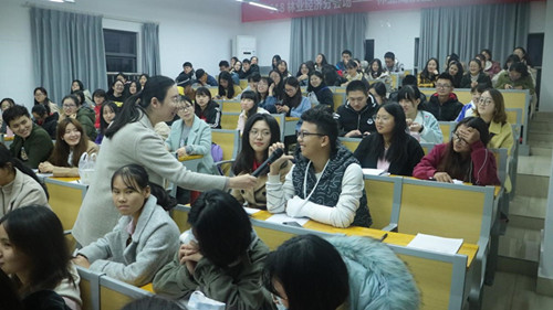 最后,崔老师将 26 个幸福婚姻要素进行了“拍卖”,如 " 身体健康、学历相当、家庭背景、有共同生活目标 ……",让大家为幸福婚姻出价,同学们兴致勃勃,积极参与拍卖。崔进老师生动幽默的讲话赢得了大家的喜欢与掌声。相信在座的同学也通过崔进老师的讲解婚姻观也进一步升华,爱的能力也有所提升。