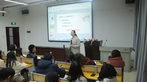 崔进老师接着向大家讲解了古代孝亲文化和五伦关系。她认为结婚后有了妻儿也不能忘记自己的父母,仍需孝顺父母,关心父母。 她说,夫妻之间要互相帮助、互相理解、共同营造一个良好的家庭氛围。“冲动激情不是长久,平平淡淡才能相伴一生”。她勉励大家“经营自己是永恒的主题”,勉励大家努力学习提升自我。在谈到“幸福婚姻的密码”时,她说“执子之手,与子偕老。这包括赡养四位老人,互相帮助,共同进步以及培育好下一代。”不是简单的结婚,更是责任的上升。