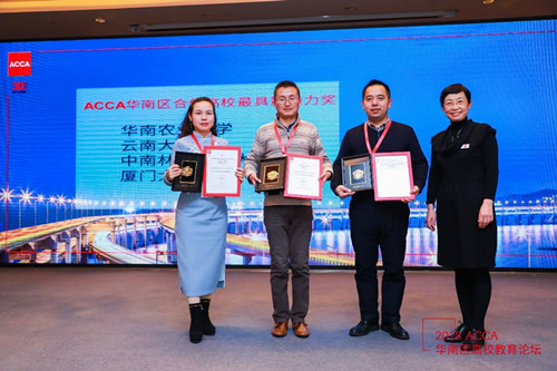 2018年12月14日,ACCA华南区高校教育论坛在长沙凯宾斯基酒店成功举行,来自全国30余家高校和知名企业代表参会,我校商学院ACCA团队成员邓丽君、吴友亮、张晓琼、蒋丽斌、王军茹参加本次论坛。我校喜获ACCA2018年度华南区合作高校最具影响力奖。