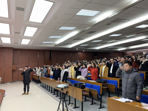 1月3号中午12点,商学院在博文楼北304报告厅举行2018年党员大会,学院党委书记陈文俊教授、党委副书记徐钰婷老师出席会议,学生支部书记、全体学生党员参加会议,会议由陈敬高老师主持。
