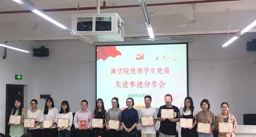 首先辅导员谭浪老师宣布先进事迹分享会正式开始,并介绍到场嘉宾;紧接着是商学院党委此次评选出的12名优秀学生党员一一上台分享自身的先进事迹。