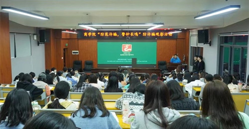 为响应学校安全教育建设,加强同学们对电信诈骗的辨别能力,提高自身的防范意识和防诈骗能力,商学院于2021年4月22日19:00在博文楼南1205开展了主题为“防范诈骗,警钟长鸣”观影活动。