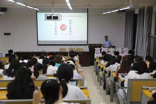 5月14日晚,商院大讲堂“先锋说”之百年百讲第三讲在博文楼南1005举行,主讲嘉宾是中南林业科技大学马克思主义学院杨泽章副教授,商学院党委副书记徐钰婷、商学院学生代表参与活动。