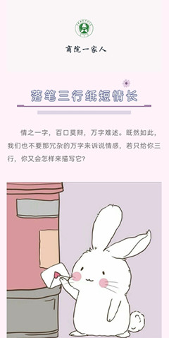 此次活动为期五天,在这五天内,无论是亲情友情还是爱情,同学们均可拿起手中的笔,写下短短三行,说出爱的心声。本次活动一经发出,同学们积极参与其中,短短三行字中流露出自己的真情实感。获奖作品也经由“商院一家人”公众号投票选出。通过本次活动,我们看到了每个人内心中的坚毅、温柔、善良与忧愁。