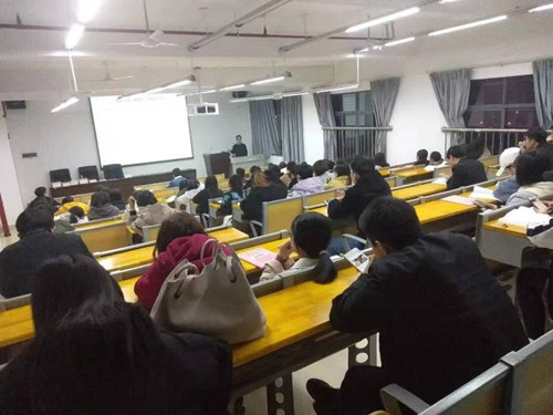 3月14日晚,学院在博文楼南1205报告厅举办了“决胜2019湖南省考”公益讲座。此次讲座由华图资深讲师王信主讲,60余名学生参加。