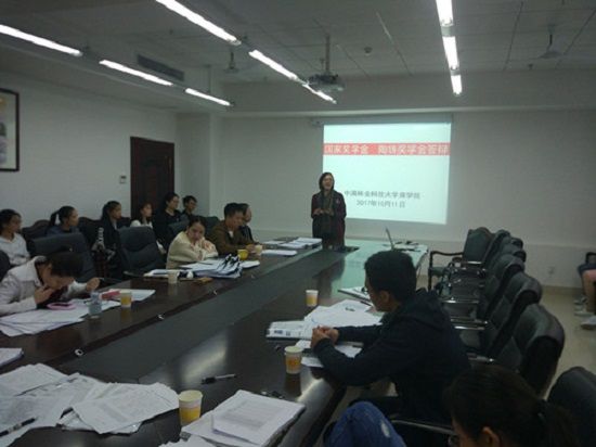 为树立优秀学习榜样,激励同学们认真学习,综合发展。10月11日中午12:30,学院本科生2016-2017年度国家奖学金和陶铸奖学金答辩会在文科楼南1206会议室举行,党委副书记徐钰婷及各年级辅导员出席本次答辩会并担任评委。