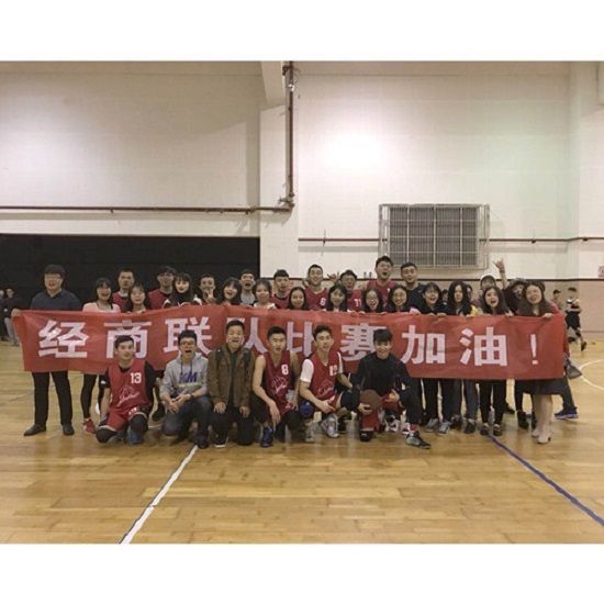 尽管最终以38:42遗憾输掉比赛,但通过比赛想要表达的体育精神却在他们身上得到完美的诠释:奋勇拼搏,积极上进,精诚合作,永不言败!最后,陈敬高老师和商学院研究生会主席刘远昇以及在场加油的同学们同经商联队所有队员合影留念。