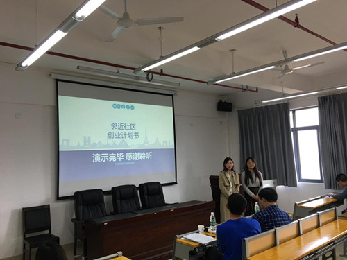 此次“创青春”院赛从2017年11月份开始,历经预赛的项目甄选和修改反馈,共有14支队伍参加复赛路演。复赛路演以公开答辩的形式进行,14支团队经过精彩的项目陈述和问答,充分展示了各自创业项目的特色。各参赛团队分别从项目背景分析、项目开发与意义、市场及竞争分析、营销策略、赢利模式、经济及财务状况、融资方案和回报、经营管理和运作方案、风险管理等方面进行团队创业项目和运营思路展示。每个项目展示完成后,评委老师根据各团队创业计划书的可行性、资金分配、竞争优势、公司战略等方面进行提问,师生互动十分精彩,整个路演历时达三个半小时。