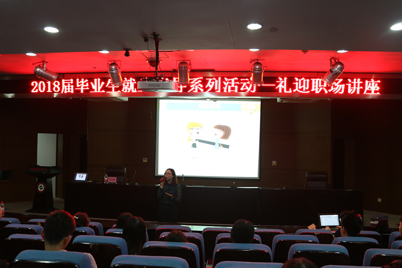 2017年6月14日晚,由我校招生就业处主办的2018届毕业生就业指导系列活动——礼迎职场讲座在图书馆报告厅热烈召开,本次讲座的主讲人是我校商学院党委副书记徐钰婷,校招生就业处刘洋老师、商学院辅导员以及2018届毕业生参加了本次讲座。