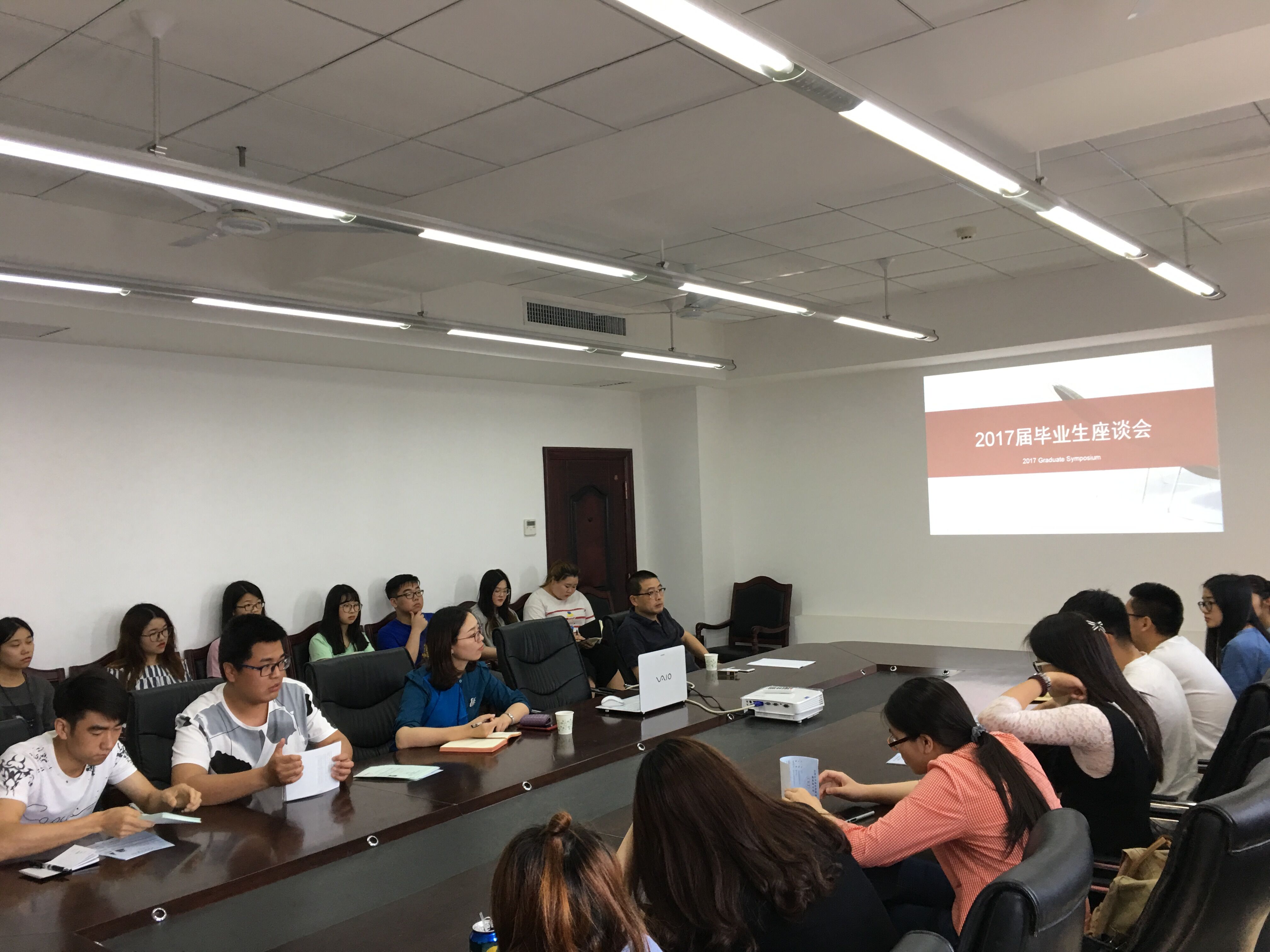 2017年5月17日下午,商学院2017届毕业生座谈会在文科楼南1206会议室召开。出席座谈会的有商学院党委副书记徐钰婷,就业专干董志军老师、胡旭老师,2013级的毕业生代表及低年级学生代表,会议由董志军老师主持。
