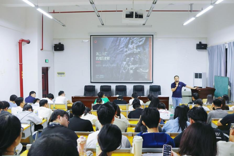 会上,黄昕老师以湖南深厚的红色文化为切入点,带领同学们回顾抗日战争的壮阔历程,深入阐释了抗战胜利的伟大意义及深刻启示。他指出,抗战精神是中华民族宝贵的精神财富,既推动了民族觉醒,也为民族复兴注入动力,更为国家赢得国际话语权奠定基础,希望同学们牢记历史、勿忘国耻,传承和弘扬伟大的抗战精神,为实现中华民族伟大复兴贡献自己的青春力量。