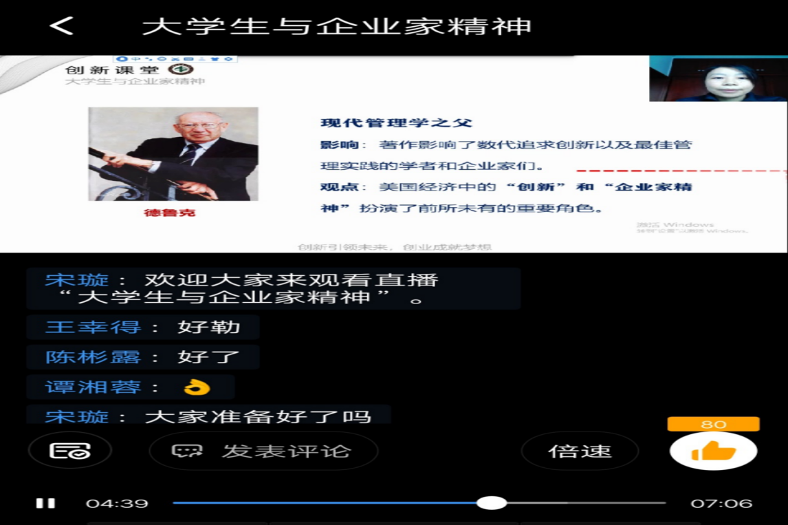 讲授《创新创业基础课程》的宋璇老师通过超星学习通平台、钉钉直播给2019级物流管理专业的同学进行网上教学。宋璇老师精心设计教学内容,引导学生进行深入思考什么是企业家精神,课堂中宋老师注重与学生互动,包括提问、解答等,极大地活跃了课堂气氛边讲解,针对同学们的疑问,逐一进行解答,同学们在老师的指导下将问题消化在课堂上,确保了教学质量。学生们通过屏幕及时回应老师,积极回答老师的提问,对在线学习也是信心满满。